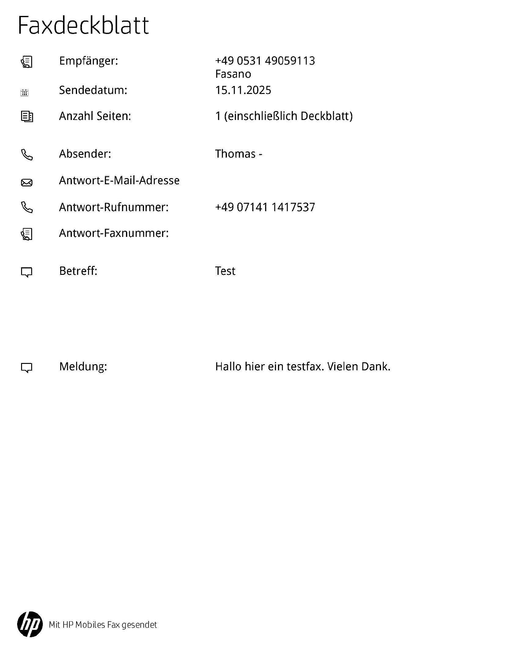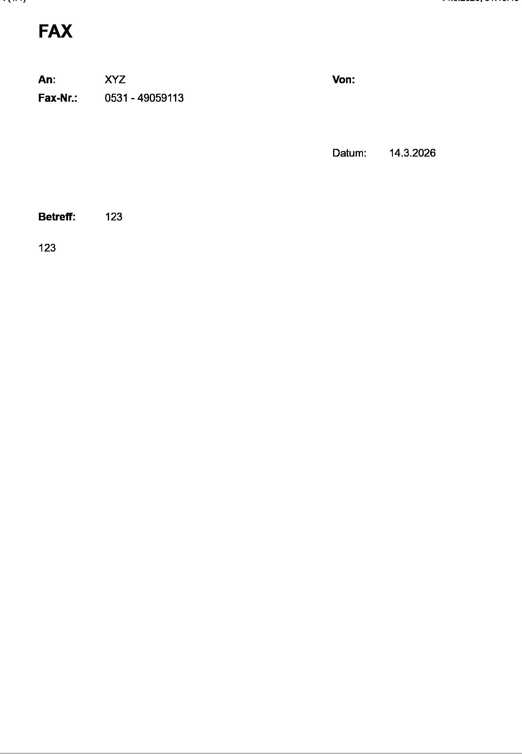 - Senden Sie ein Testfax an 0531 - 49059113