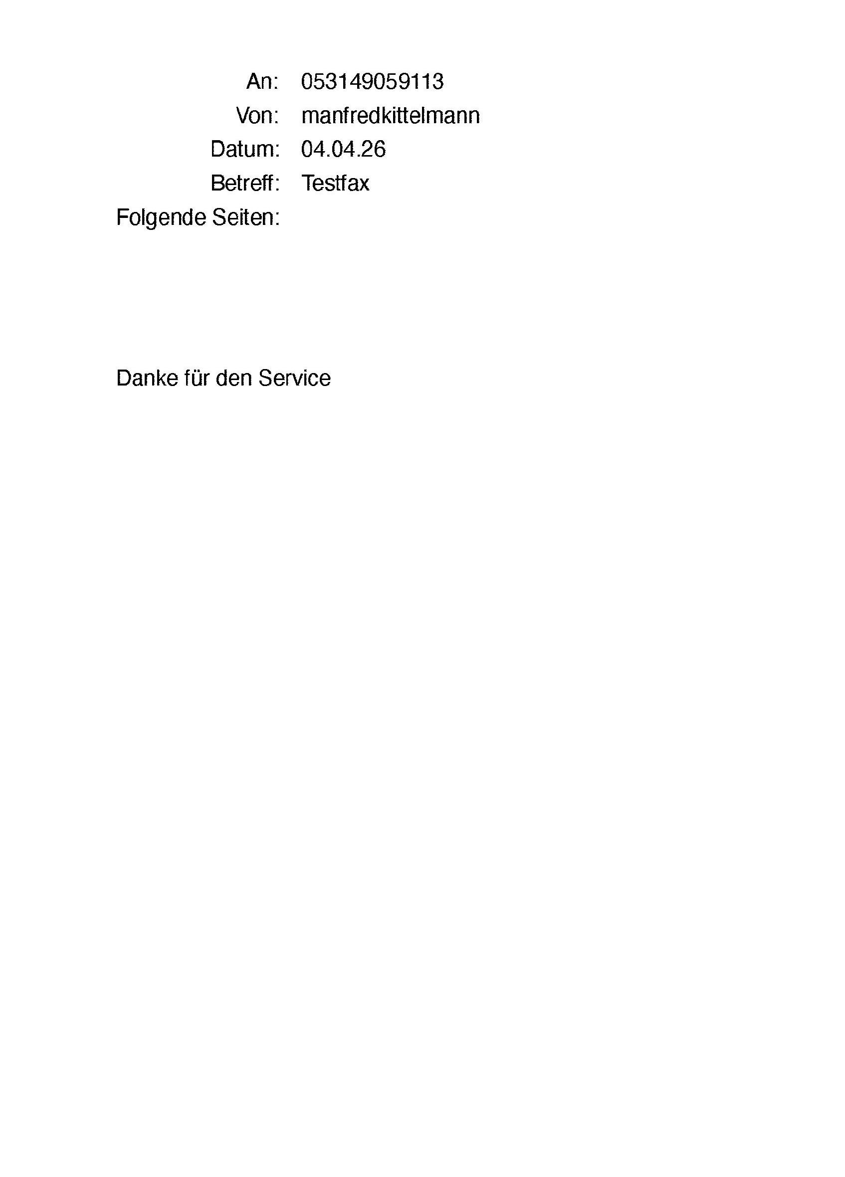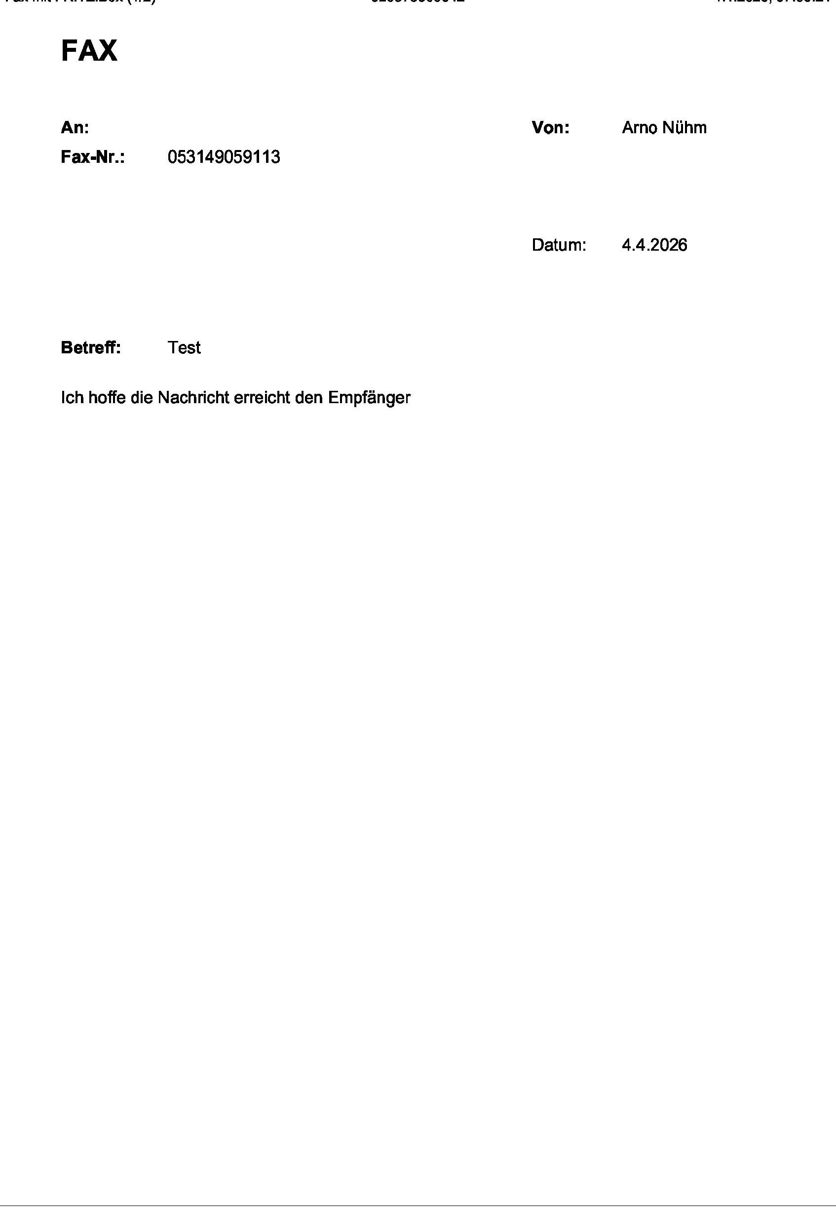 - Senden Sie ein Testfax an 0531 - 49059113